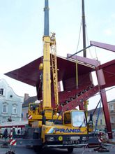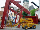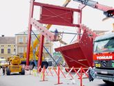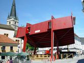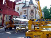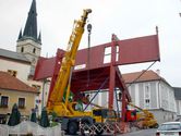 Wie von Zauberhand fügen sie die Tribüne vor den Augen vieler Schaulustiger gleich einem Riesenmatador innerhalb weniger Tage in das barocke Altstadtensemble.